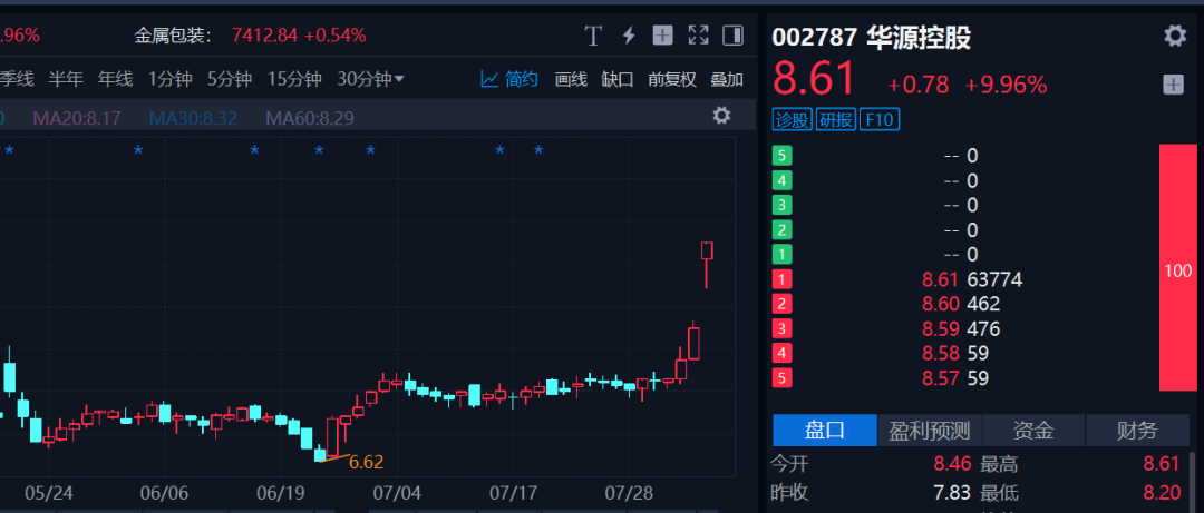 8月7日上午,华源控股盘初强势封涨停板,报8.61元创3个月新高。昨日晚间公司公告,实控人之一李炳兴,拟将所持1643.15万股公司股份(占总股本5.2%),协议转让给上海岱熹投资管理有限公司,合计价款1.14亿元。
