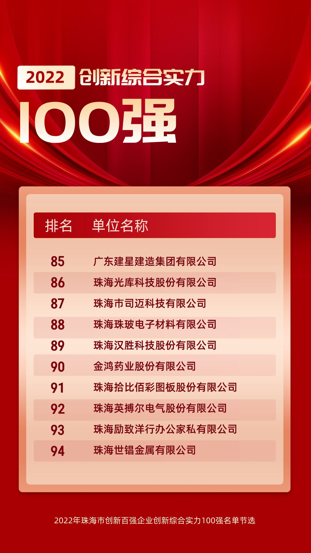 珠海市创新综合实力百强企业是指经济规模大、创新能力强,在研究开发人员、研究开发经费投入、科技成果产出等方面具有显著优势的100家高企,是科技企业创新的骨干力量。