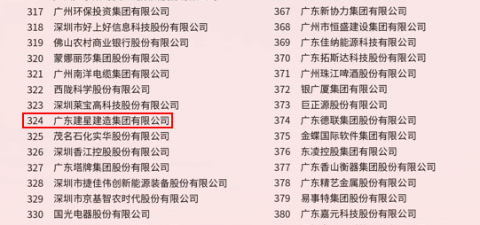 近年来,建星集团保持可持续健康发展,综合实力、创新能力与发展潜力稳步提升。再度登榜粤企500强,是社会各界对公司强劲发展态势、为推动全省经济高质量发展所作贡献的充分肯定与认可。