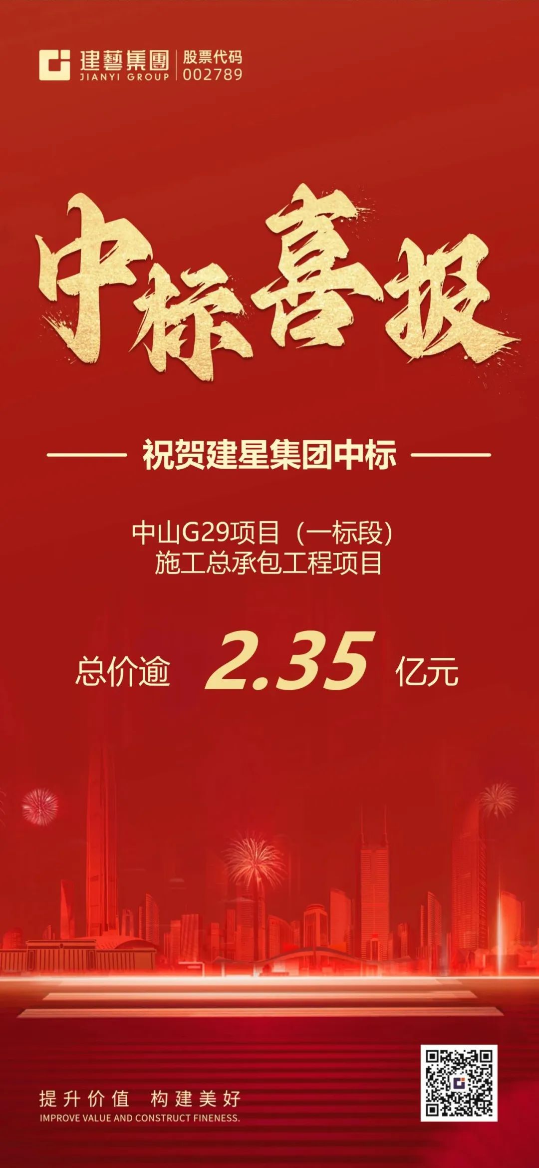 今年1月份至今,建星建造连续中标,如中山G29项目(一标段)、湾中新城项目F52地块小学施工总承包工程,珠海裕华项目部分工程,项目总金额达11.95亿元。