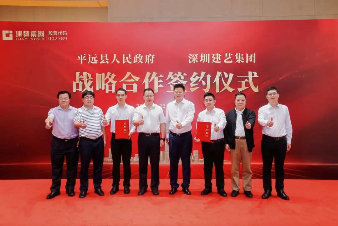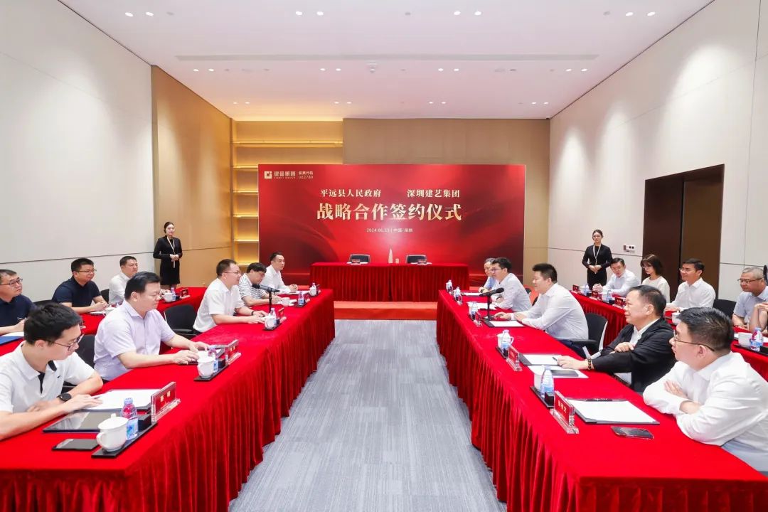 6月3日,建艺集团与平远县人民政府战略合作协议签约仪式举行。平远县委书记、县长周小勇,平远县委常委、统战部部长林忠云,平远县委常委、副县长韩旭,平远县副县长李菲丹,平远县副县长蔡榕;深圳建艺集团董事长唐亮,集团荣誉董事长刘海云,集团副董事长郭伟;集团总裁张有文等出席仪式。