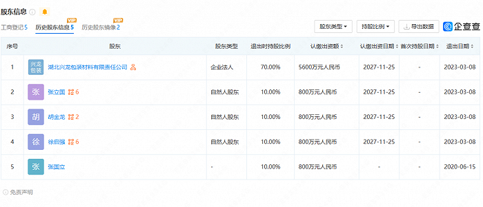 然而仅仅在十几天前,湖北和嘉的的大股东,还是湖北兴龙包装材料有限责任公司(简称湖北兴龙),该公司持有湖北和嘉70%的股份,剩余股份则由徐启强、胡金龙、张立国等自然人持有。