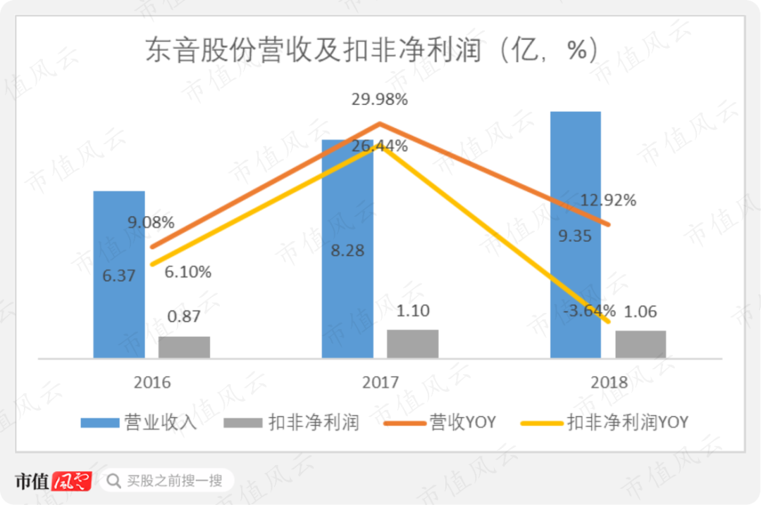 2018年,公司营收为9.35亿,同比上升12.92%,营收增速放缓。同时,公司的扣非净利润也开始出现负增长,2018年为1.06亿,同比下降3.64%。