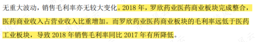 公司公告称,主要是2018年上市公司医药商业板块的营收增加,拉低了整体毛利率。