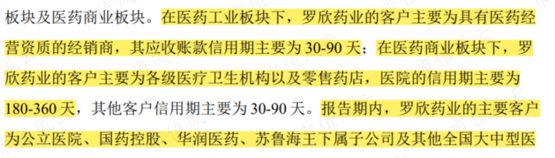 同时,风云君找到了同行业中的立方制药(003020.SZ),其医药商业板块信用期在6-10个月,下游客户以公立医疗机构为主,与罗欣药业较为接近。