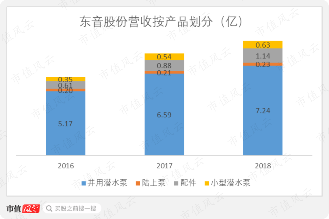 东音股份于2016年4月在中小板上市,主营井用潜水泵、小型潜水泵及陆上泵的研发、生产和销售,主要产品为井用潜水泵。