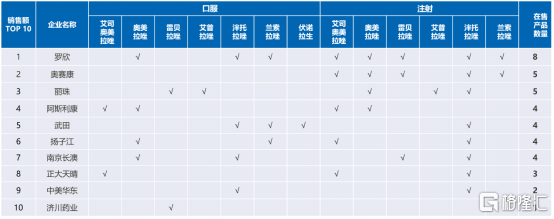 图表三:中国口服和注射PPI前十企业