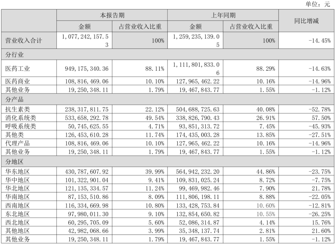不过,其他5类产品的营业收入均出现了下降,特别是排名第2的抗生素类,下降幅度高达52.78%。
