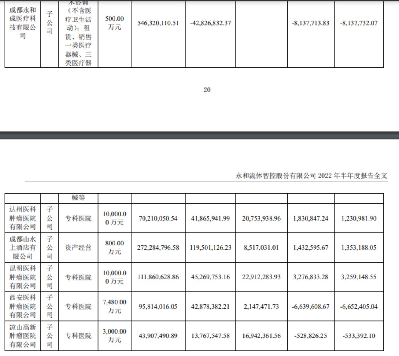 一位私募人士表示,“医疗服务业投入巨大,且回报周期较慢,非常消耗资本”。据2022年半年报,永和智控三家医院整体仍处于亏损状态。
