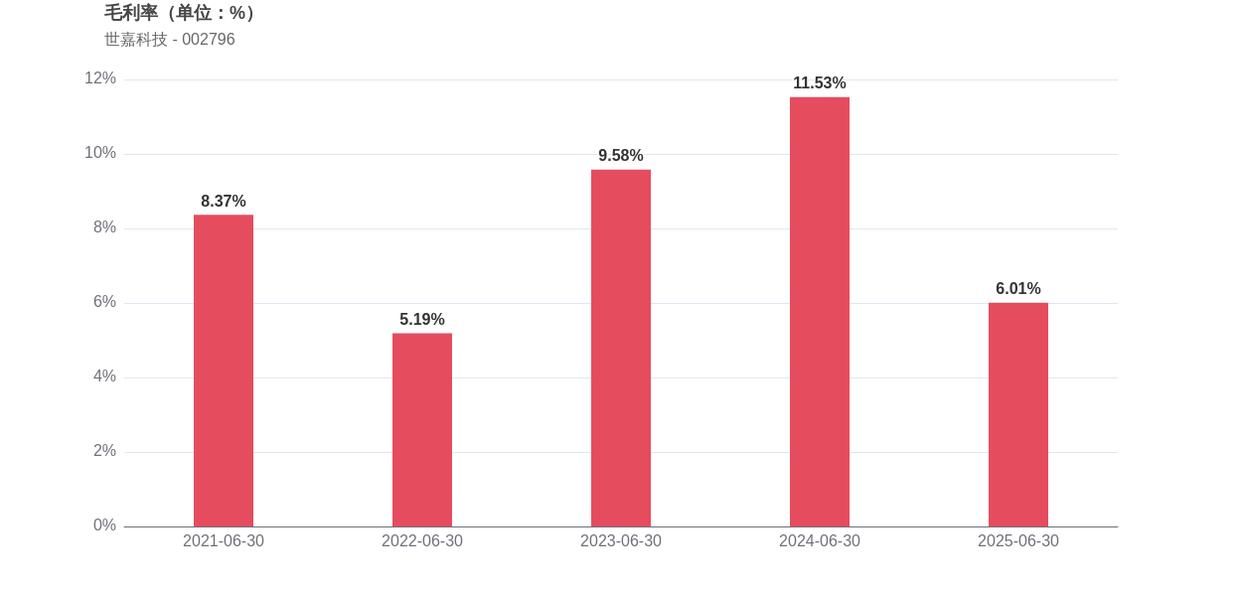 在2025年上半年,世嘉科技的经营业绩承压明显,营业收入和净利润双双下滑。引人关注的是,公司归母净利润为-0.45亿元,同比大幅下滑350.64%,陷入亏损状态。