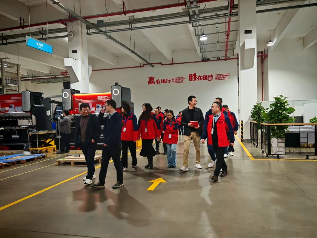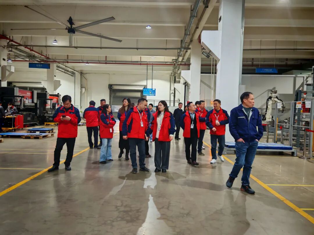 随后,一行人移步生产车间,近距离感受“智”造魅力。走进现代化车间,智能化生产线高速运转,机械臂精准灵活地完成各项操作,自动化检测设备实时监控产品质量,数字化管理系统清晰呈现生产全流程——从原材料加工到成品出库,每一个环节都彰显着高效、精准、智能的生产理念。