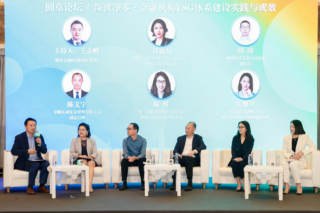 图片说明:第一创业证券董事会办公室代理负责人施维参与“深渡净零·金融机构ESG体系建设实践与成效”分论坛圆桌讨论。