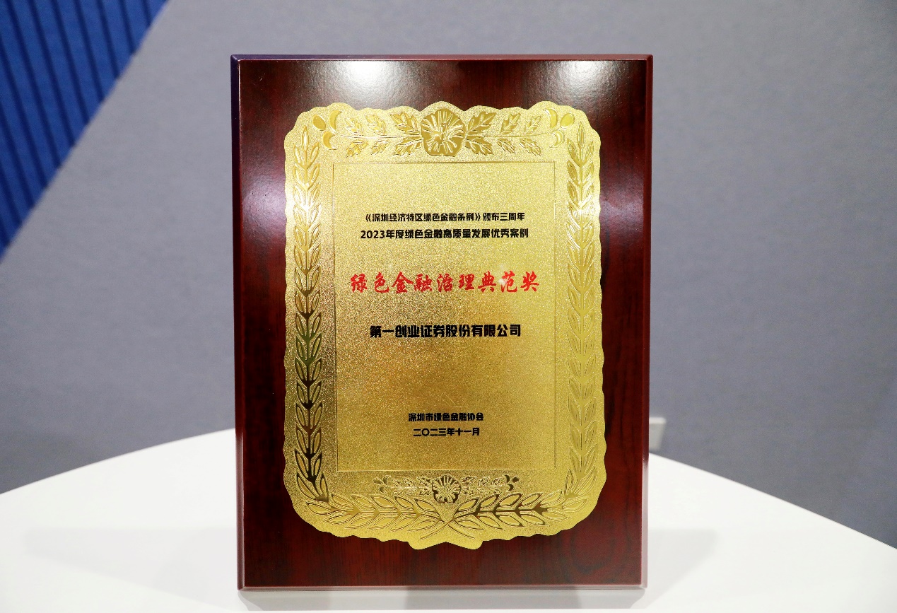 2023年11月28-29日,由深圳市地方金融监督管理局主办,深圳市绿色金融协会承办的“《深圳经济特区绿色金融条例》颁布三周年暨绿色金融2023年度论坛”隆重举行,“2023年绿色金融高质量发展优秀案例”正式发布。第一创业证券凭借卓越的绿色金融治理实践,入选2023年绿色金融高质量发展优秀案例,荣获“绿色金融治理典范奖”。