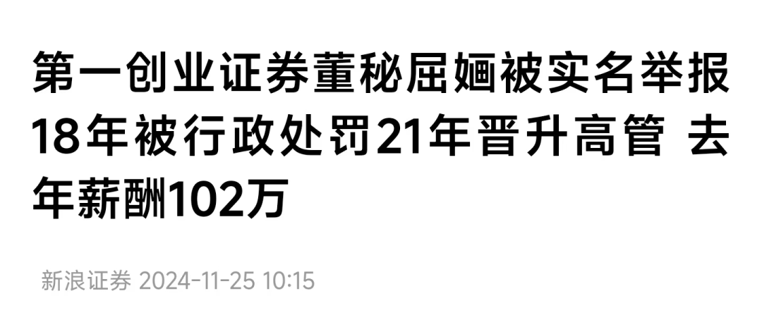 新浪证券称,第一创业证券现任董事会秘书为屈婳于2021年6月上任第一创业证券董事会秘书,至今已有三年多,与举报信信息一致。