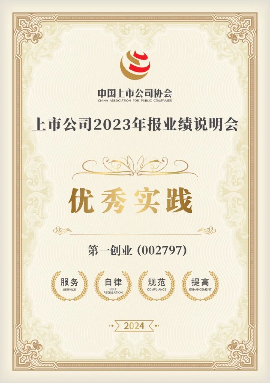本次荣获“上市公司2023年报业绩说明会优秀实践”是对第一创业证券信息披露与投资者关系管理工作的重要认可。未来,公司将持续丰富创新业绩说明会的内容和形式,充分利用业绩说明会这一平台进一步加强公司与投资者之间的双向互动,增进投资者对公司的了解,正确传递公司价值。同时,公司将以业绩说明会为重要纽带,持续提升公司治理水平,夯实公司高质量发展基础。