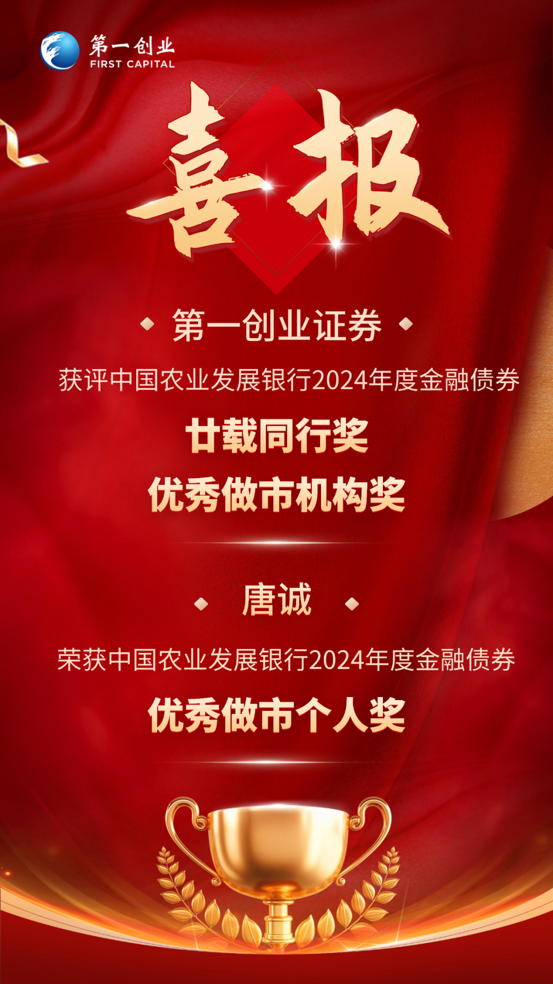近日,中国农业发展银行发布了《2024年度金融债券优秀承销做市机构及优秀个人表彰名单》。其中,第一创业证券获评“廿载同行奖”和“优秀做市机构”,固定收益投资部唐诚被评为“优秀做市个人”。