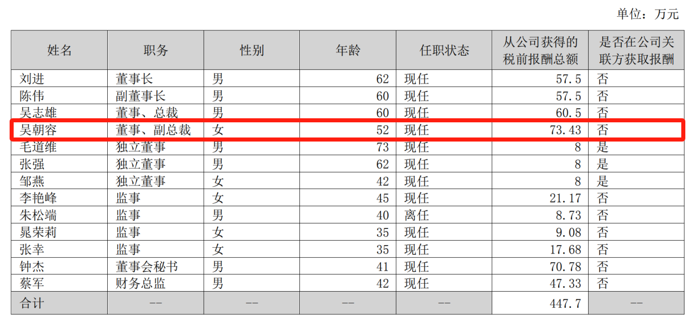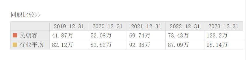 据查,帝欧家居董事、副总裁吴朝容2023年报酬为123.18万元。2022年其报酬为73.43万元,2023年涨薪49.75万元,增幅67.75%。