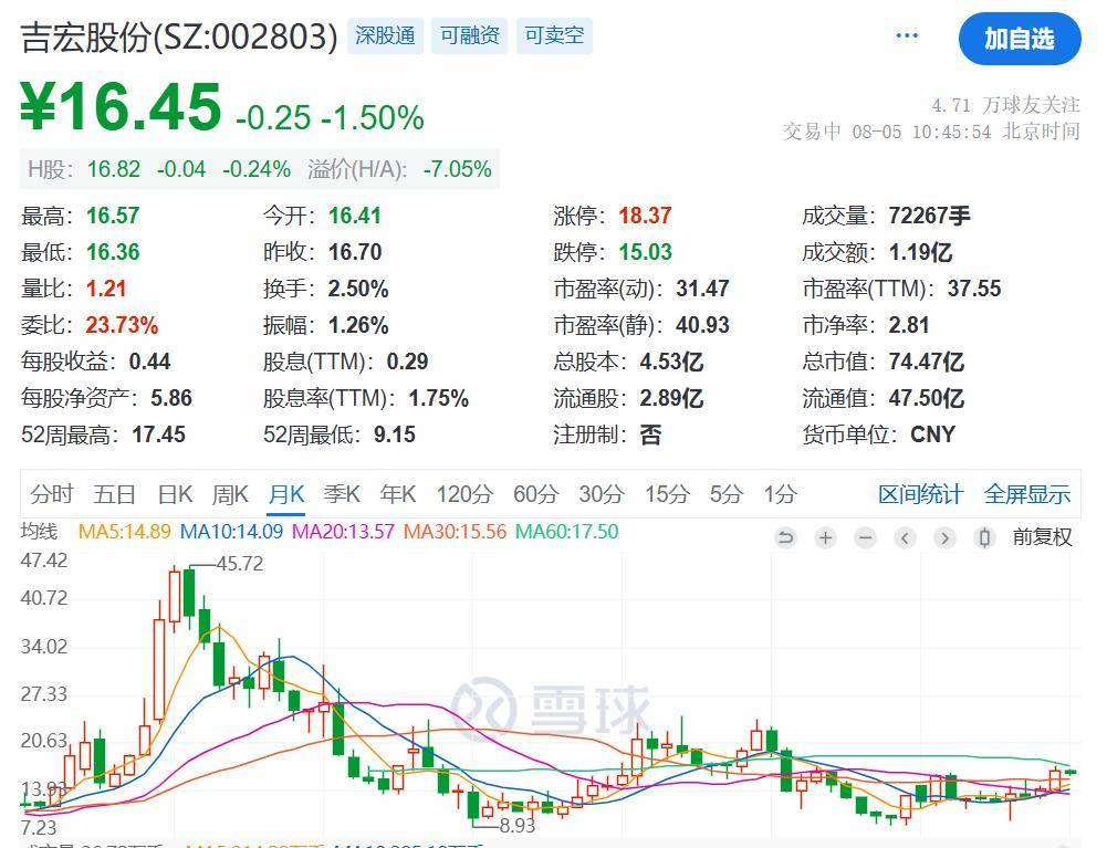 然而,在二级市场上,吉宏股份的股价近年来却呈现震荡下滑的趋势。自2020年9月至今,股价已累计下跌超过六成,反映了市场对公司业绩的担忧。