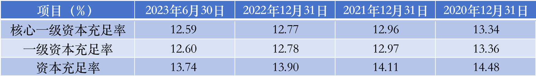 截至2023年6月底,江阴银行资本充足率为13.74%、一级资本充足率为12.60%、核心一级资本充足率为12.59%。