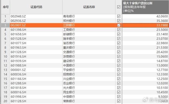 数据显示,截至4月2日,在A股已经公布去年数据的20家上市银行中,33.19%的最大十家客户贷款贷款比例为第三高,仅次于青岛银行和郑州银行。