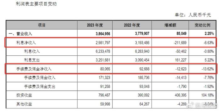 不过,仔细探究一番之后,还是能从江阴银行的财报中感受到一股冷意。一来,该行净息差由前一年的2.18%降至去年的2.06%。对应利息净收入从31.93亿元降至2023的29.82亿元。此外手续费及佣金的净收入的下降比例也超过了10%。