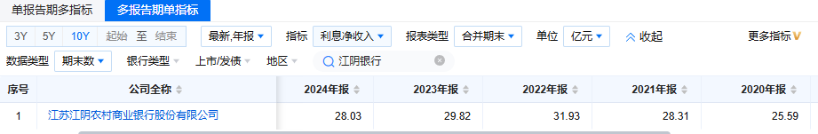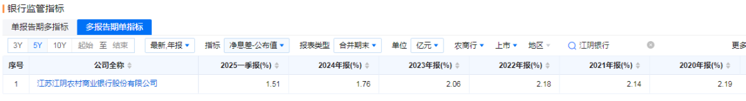 近五年数据显示,自2023年起,象征江阴银行传统存贷业务经营状况的净利息收入已连续两年负增长。2024年,该行利息净收入28.03亿元,同比下降6%。