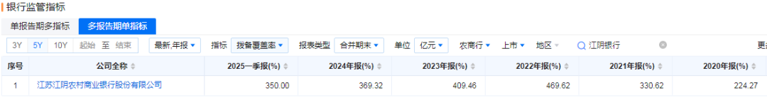 具体来看,今年一季度该行不良贷款率0.86%,较年初持平,为近五年最低水平;不良贷款余额11.09亿元,相较年初的10.7亿元增长了0.39亿元。同时,该行拨备覆盖率继去年回落至400%以下后,继续下滑至350%,较年初减少19.32个百分点。