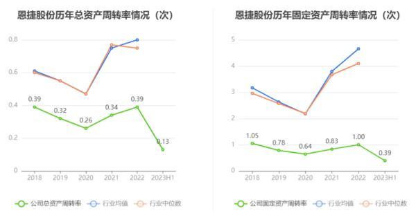 恒生聚源数据显示,恩捷股份2023年上半年总资产周转率为0.13次,上年同期为0.20次;公司固定资产周转率为0.39次,上年同期为0.50次。
