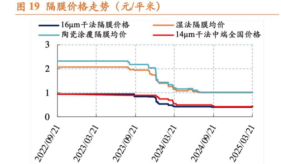 “但当前隔膜行业部分新产能尚未完全达产,短期内供大于求的市场格局难以改变。为在竞争中抢占更多订单,企业极有可能再度引发激烈价格战。”百川盈孚研报指出,鉴于各类规格隔膜价格已跌至低位,因此后续降价幅度或将极为有限,预计短期隔膜价格或延续平稳运行。