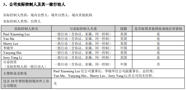 本次交易前,上市公司控股股东为Paul Xiaoming Lee,上市公司实际控制人为李晓明家族。本次交易完成后,上市公司的控股股东及实际控制人不会发生变化。