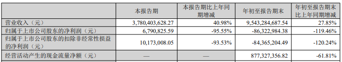 2024年、2025年前三季度, 恩捷股份 归属于上市公司股东的净利润分别为-5.56亿元、-0.86亿元,归属于上市公司股东的扣除非经常性损益的净利润分别为-6.13亿元、-0.84亿元。