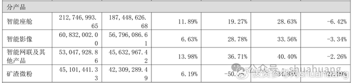 分产品来看,路畅科技全产品线的盈利能力都在2025年出现了明显滑坡,核心产品毛利率无一例外全线下滑。年报披露,公司汽车电子核心三大品类中,智能座舱产品毛利率同比下滑6.42个百分点,智能影像产品毛利率同比下滑3.34个百分点,智能网联及其他产品毛利率同比下滑2.26个百分点。而此次被剥离的矿渣微粉业务,毛利率更是同比大幅下滑22.29个百分点,成为所有产品中盈利能力恶化最严重的板块,这也是公司急于剥离该业务的核心原因。