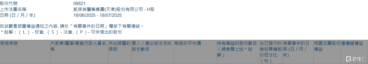 根据联交所最新权益披露资料显示,2025年7月15日,凯莱英(06821.HK)遭Norges Bank在场内以每股均价90.4025港元减持9.89万股,涉资约894.08万港元。