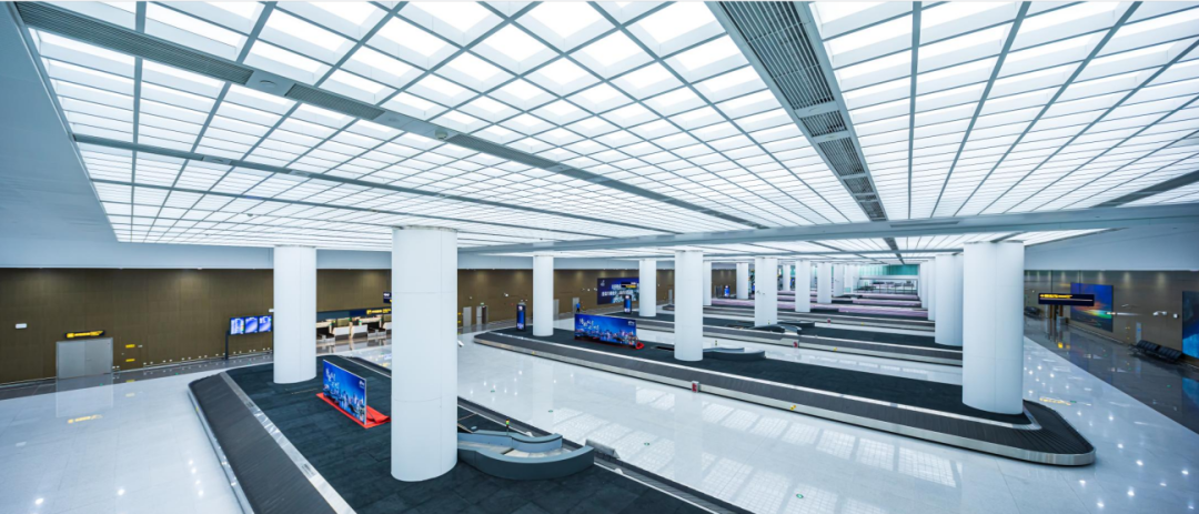 中装建设负责整体航站楼的内部精装项目,精装建筑面积约为7万平方米。项目于2018年4月10日进场正式开工,2020年6月22日竣工验收。经过一年多的测试检验,将于2021年8月12日正式通航。中装建设施工范围从施工内容涵盖从F区L1层、L2层、负一层的国内、国际行李提取大厅、行李查询及大件行李托运区以及国内、国际迎宾大厅及5个航站进出门斗、其中包含20个公共卫生间、残疾人卫生间和12个婴儿护理室等多项公共区域。