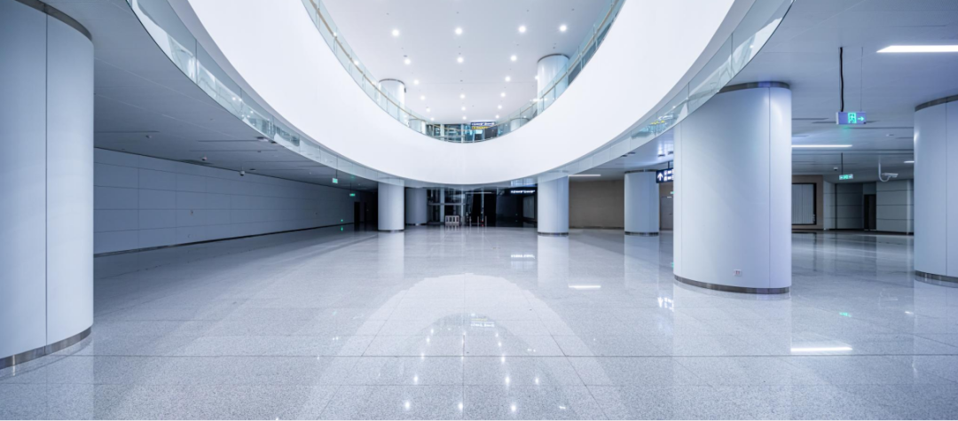 为让在负1层公共区域的旅客,抬头仰视椭圆造型共享空间开阔舒适,中装建设对椭圆洞口2.3米高的墙壁面选用乳胶漆施工工艺,呈现椭圆洞口无缝、圆顺、光滑、干净、轻巧的质量效果。让乘坐地铁远道而来的旅客,在从通往机场的地下通道走到换乘区椭圆造型共享空间附件时,透过轻巧椭圆造型洞口,仰望与迎宾大厅共享空间的天花时,会有舒适轻盈、登机遨游蓝天的期待感。