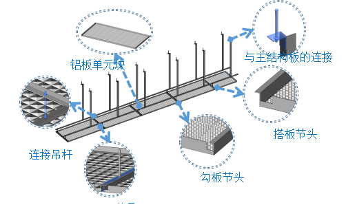 青岛胶东国际机场迎宾大厅天花吊顶采用近4800个铝方通三角造型连片组成了从东到西260米长、面积约1500㎡的大型亚克力发光造型吊顶设计方案。由于原施工图对其三角型发光吊顶内部结构设计不是很详细,无法按图具体操作施工。为保障在这大跨度、大空间的迎宾大厅天花上精装修施工及安装质量和效果,中装建设利运用BIM技术应用,不仅巧妙解决了在同一平面天花高度的铝方通与铝之间隐蔽连接安装问题,还解决了整个铝方通三角造型龙骨与南北两侧顺弧安装协调美观问题,最后也同时解决了三角造型铝方通与天花吊杆连接、并可调平整度的安装固定问题。