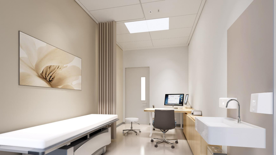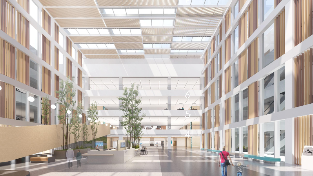 新华医院整体以“现代、绿色、人文、智慧”为设计理念,以医疗综合体为基础,重视医院内部空间与周边城市空间的联动关系,将医院与周边的交通、商业体融为一体,让医院成为城市和市民生活的一部分,达到“去医院化”的效果。