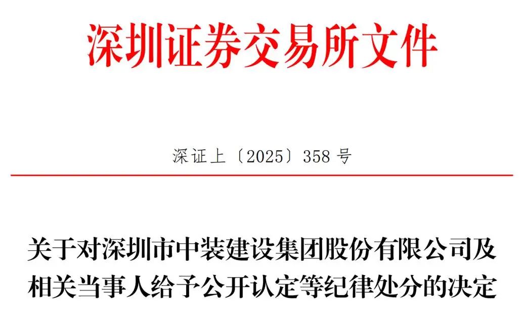 二、对深圳市中装建设集团股份有限公司给予公开谴责的处分;
