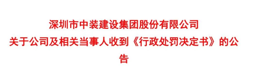 一、对深圳市中装建设集团股份有限公司责令改正,给予警告,并处以850万元罚款;