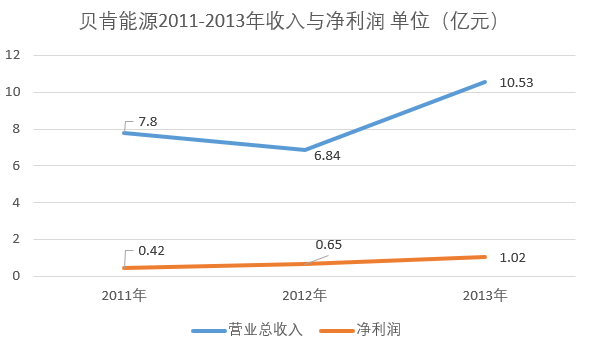 目前可查到的对外资料现实中,贝肯能源从2011年到2013年,营业收入和利润均有大幅度增长。