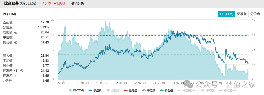 业绩下滑14.2%的同时,估值水平也出现了大幅下滑,当前12.8倍的估值已较过去五年20.5倍的估值中枢下滑了38%。业绩与估值被戴维斯双杀后,截止到2025年5月6日,最新收盘价较2023年的股价高点,已下跌超过50%。