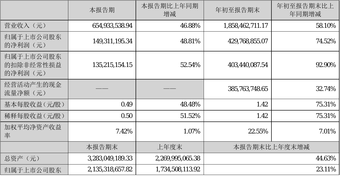 挖贝网10月29日,弘亚数控(002833)近日发布2021年前三季度报告,报告期内营业收入1,858,462,711.17元,同比增加58.10%;净利429,768,855.07元,同比净利增加74.52%。