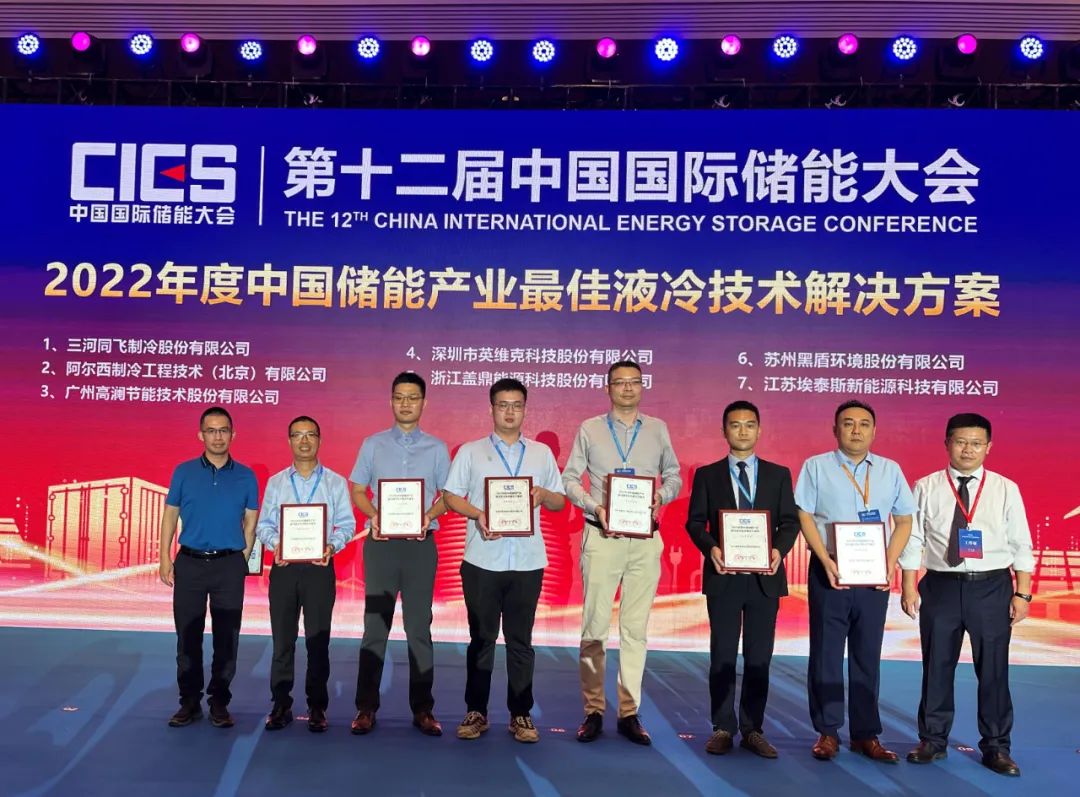 9月7日,英维克BattCool系列产品亮相CIES?2022年第十二届中国国际储能大会,并荣获“2022年度中国储能产业最佳液冷技术解决方案奖”。