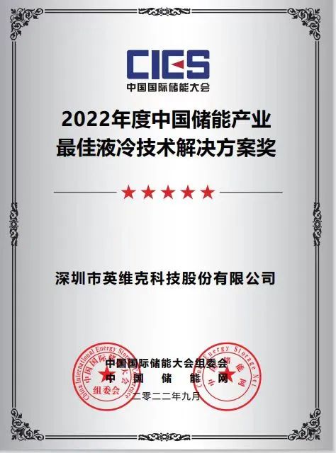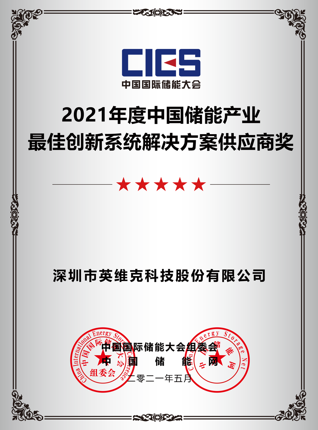 2020年英维克荣获“中国储能产业最佳储能智能装备供应商”,2021年荣获“中国储能产业最佳创新系统解决方案供应商”。