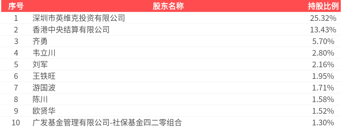 公司股东户数为5.02万户,前十大股东持股数量为4.28亿股,占总股本比例为57.46%,前十大股东持股情况如下: