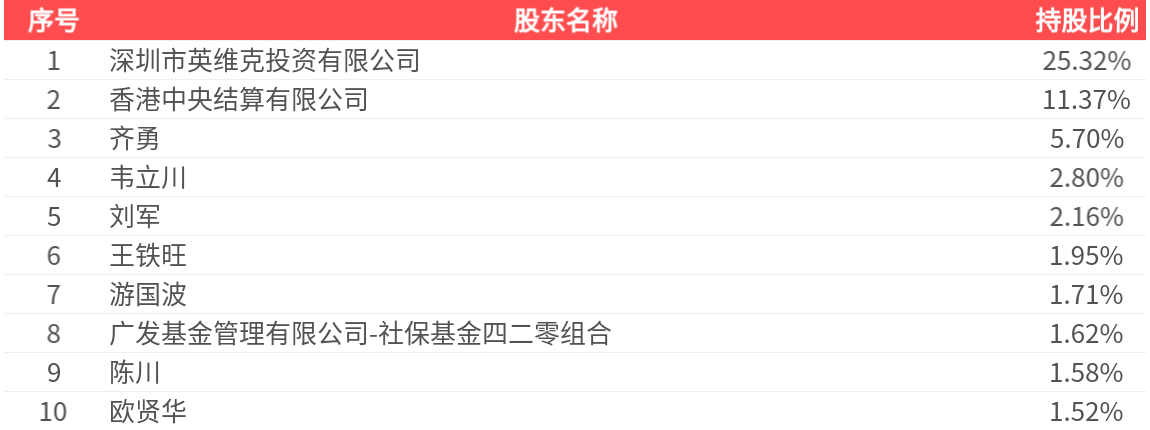公司股东户数为6.63万户,前十大股东持股数量为4.15亿股,占总股本比例为55.71%,前十大股东持股情况如下: