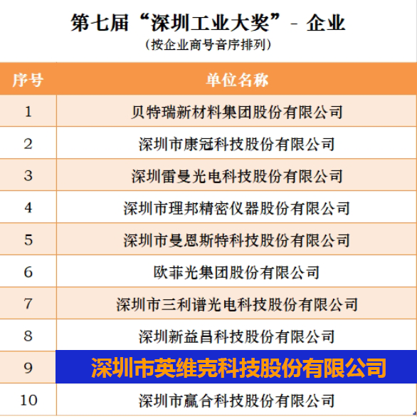 近日,第七届“深圳工业大奖”名单公示,英维克获评“深圳工业大奖”企业,企业综合实力再获行业认可。
