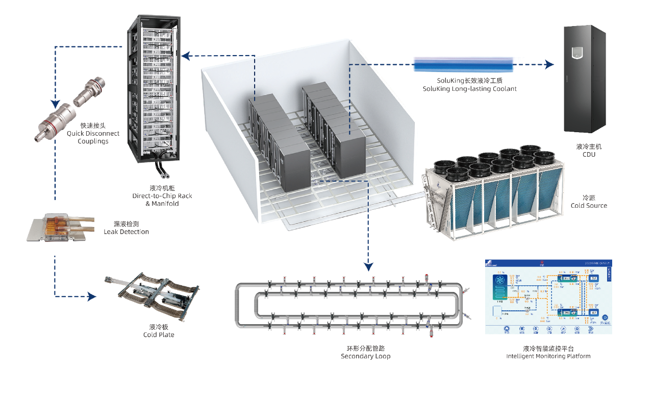 其中,Coolinside全链条液冷解决方案通过自主创新实现了全链条液冷技术的突破,XFlex模块化间接蒸发冷却系统5.0版本在节能、节水、节电方面持续优化,BattCool储能温控解决方案为新型储能系统提供了可靠保障。
