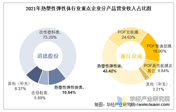 2021年,道恩股份的热塑性弹性体营收占了企业总收入比例的10.54%;浙江众成的热塑性弹性体产品营收在企业总收入中的占比达43.42%。