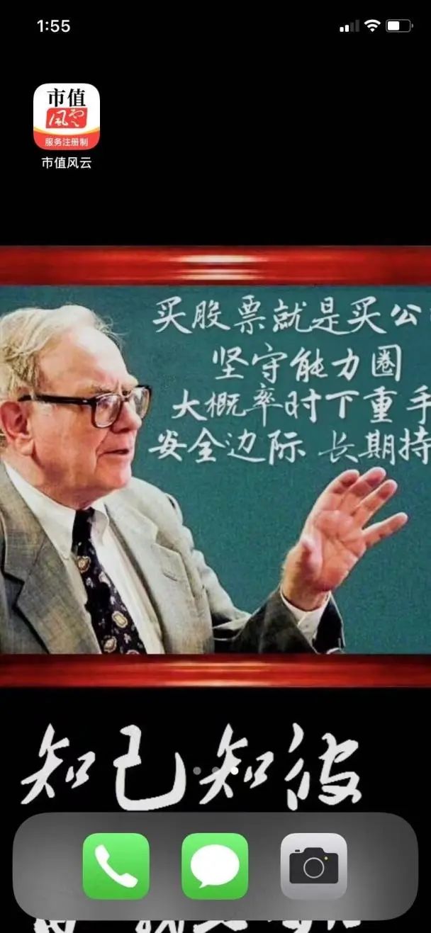 “还记得我跟你提过的秘密武器吗?”说着,巴菲特从口袋里掏出苹果手机,熟练地点开市值风云APP,“这是我保留的唯一一款投资中国股市的App,越用越喜欢,我现在都是通过它来了解中国上市公司的投资价值。”